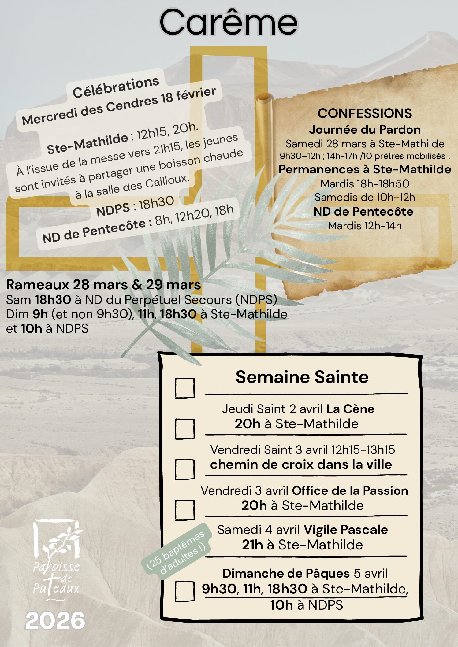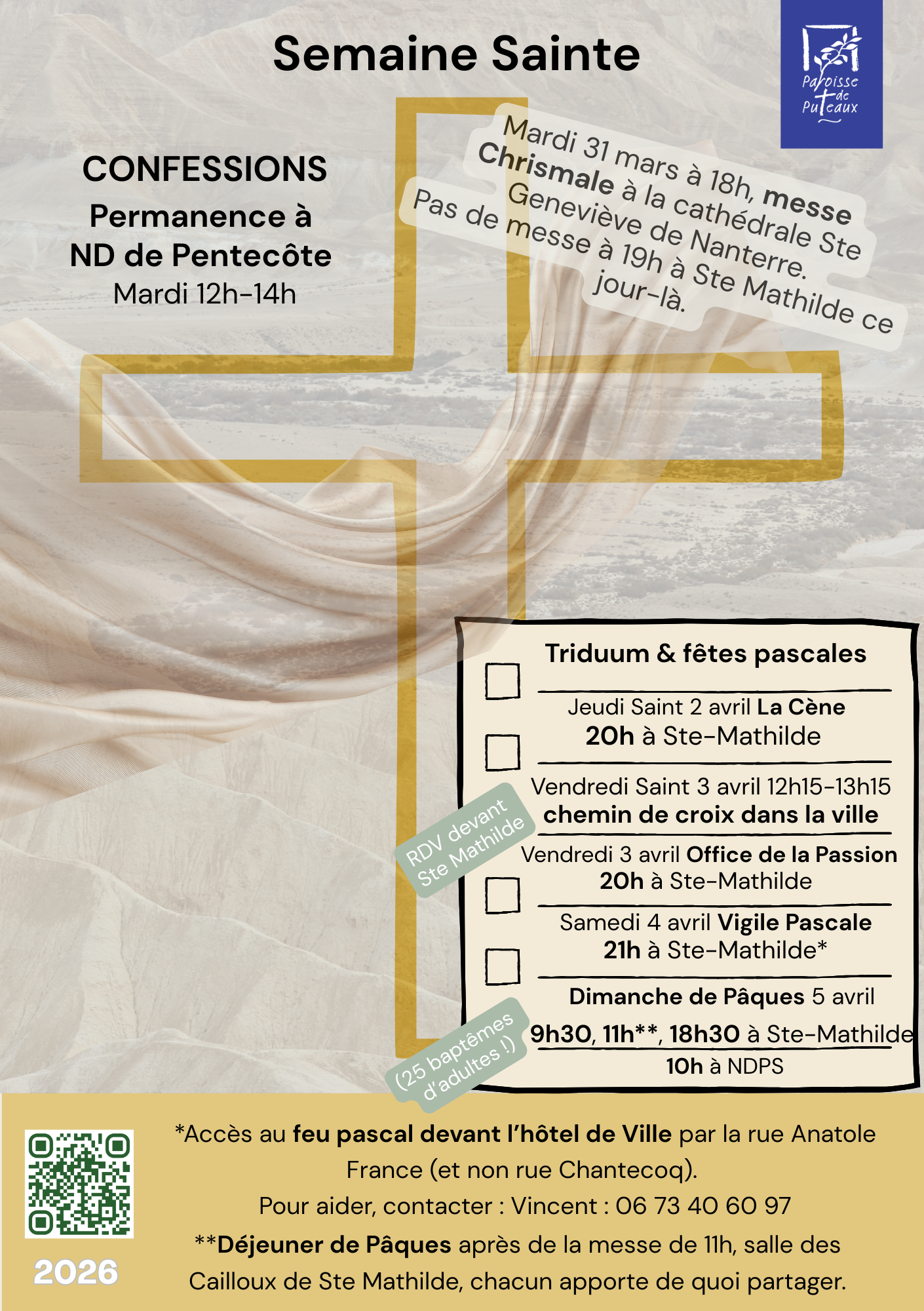 Dans le cadre du remplissage de ce formulaire, ou dans le cadre de votre participation aux activités de notre Communauté paroissiale, vous nous confiez certaines données personnelles, afin de pouvoir vous identifier ou vous contacter. La fourniture de ces données vaut accord explicite de votre part pour que nous les conservions à cet usage le temps nécessaire.